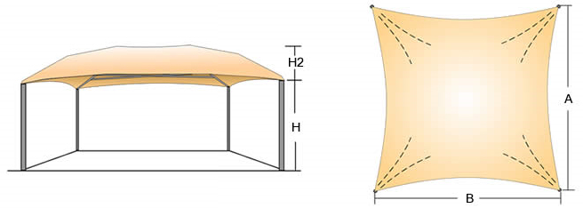 Die elegante und einfache Form dieses Zeltes, zieht die Aufmerksamkeit und Blicke Ihrer Kundschaft auf sich und bietet Ihnen ein unübertreffliches Bild Ihrer Ausstellungsfläche.